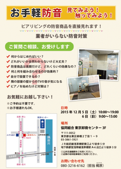 集合住宅向けの防音商品の通販サイト「ピアリビング」を運営するケイエムテクノス(福岡県宗像市)は、東京圏では6回目となる「防音体験展示会」を12月5日・6日に開催する。