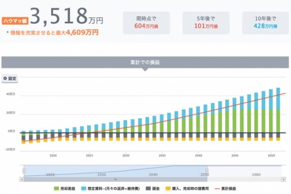 同サービスでは、都心部だけではなく、全国のマンション・戸建て住宅の価格推定が可能となった。不動産会社に査定依頼をしなくても、不動産売却を迷っている段階から自宅の売却価格が推定できる。不動産の購入価格、金利等の情報を入力すると、残債と推定売却価格との比較、不動産の購入によって賃貸への居住と比べていくら得をしているか等のシミュレーションができる。不動産所有者が計画的に自宅の保有・売却を検討することが可能。