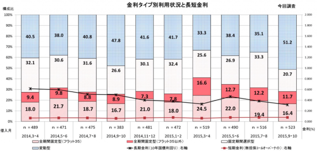 それによると、「変動型」の利用割合は、前回調査(7月・8月期)の35.1%から16.1ポイント増加して51.2%となった。50%を超えたのは2012年12月ぶり。
