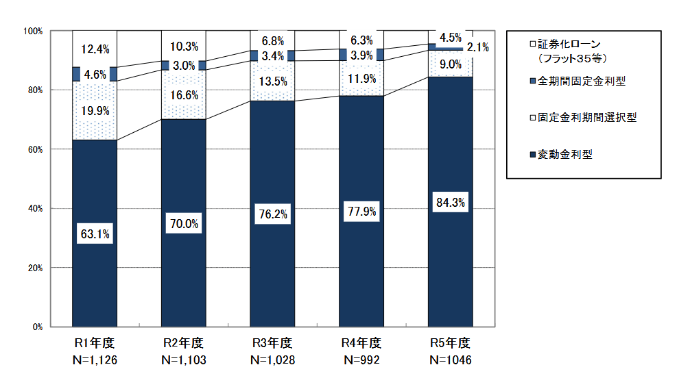 「全期間固定型」の利用割合は、前回比3.5ポイント減の28.1%だった。