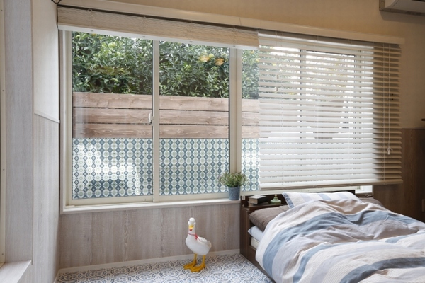 窓に貼って目隠しができる「ウィンドウシート」は、ステンドグラス風のシートが採光を保ちながら外からの視線を遮るので、浴室などにも使用できる。