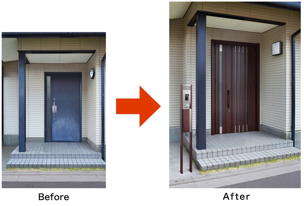 リシェントは、外壁を壊すことなく、既存枠を残したまま上から新しい枠や額縁でカバーして新しいドアを取り付ける人気シリーズ。