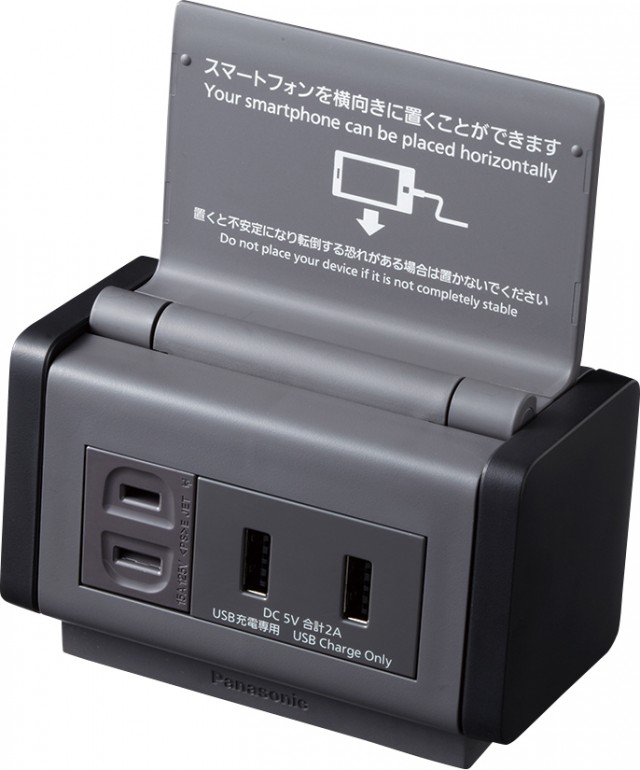 パナソニック(大阪府門真市)エコソリューションズ社は3月21日、スマートフォンやタブレット端末などの電子機器の充電用に、スマホが置けるスタンド機能を搭載した「カバー付露出コンセント」を発売する。