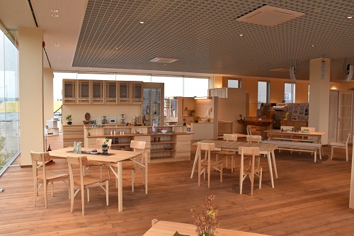 「家づくりや暮らしの楽しさ」を発信する3階建て・1700㎡のショールームに、建材や実物大の工法模型をはじめ、同社オリジナルの無垢材の家具、高級タイプのベッド・寝具、薪ストーブなど約2000アイテムを取りそろえる。家具や生活用品、小物などは一般販売するショップ機能も備える。