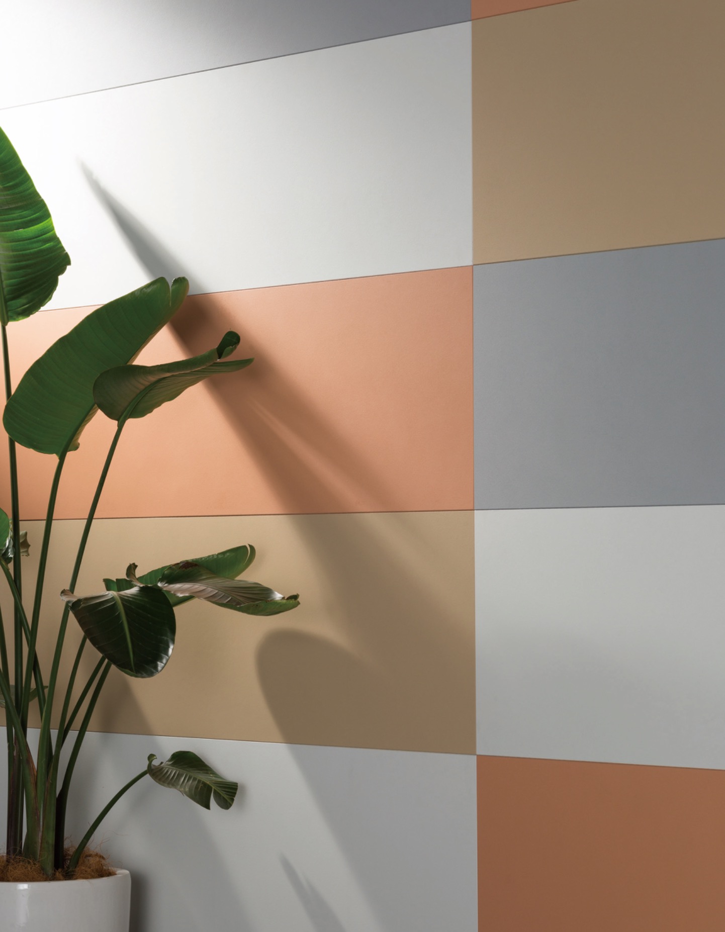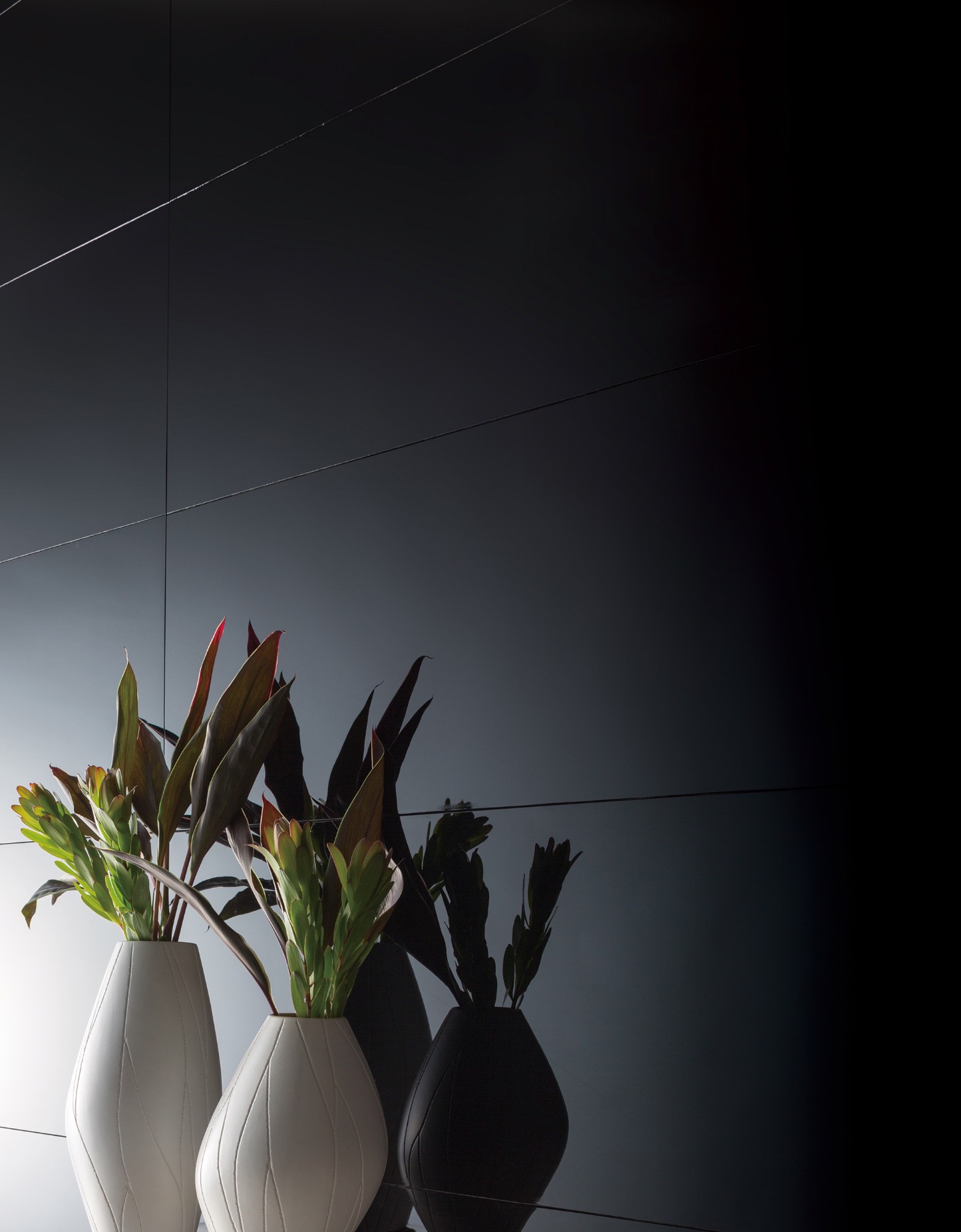 2種類をラインアップ。ひとつは、従来のサイディングでは難しいと言われていたシルエットが映り込む鏡面仕上げの「ミライア」。モノカラー13色、大理石調3色のほか、特注色への対応も予定する。