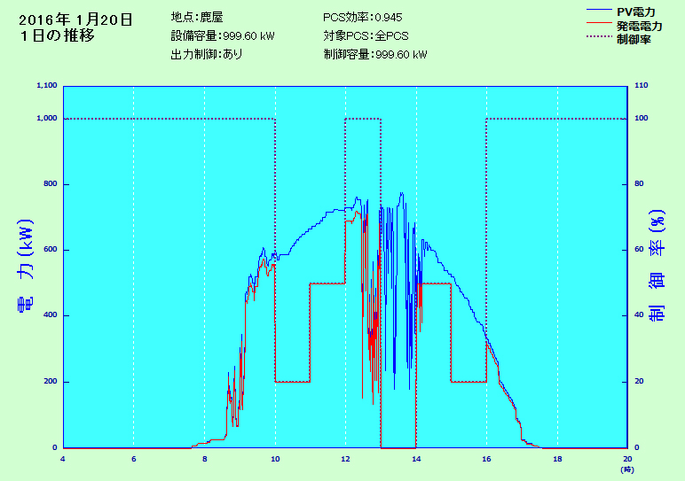 制御パターンを登録すると、出力制御の有無による総発電量の違いを正確に試算し、設置時の検討に使うことができる。