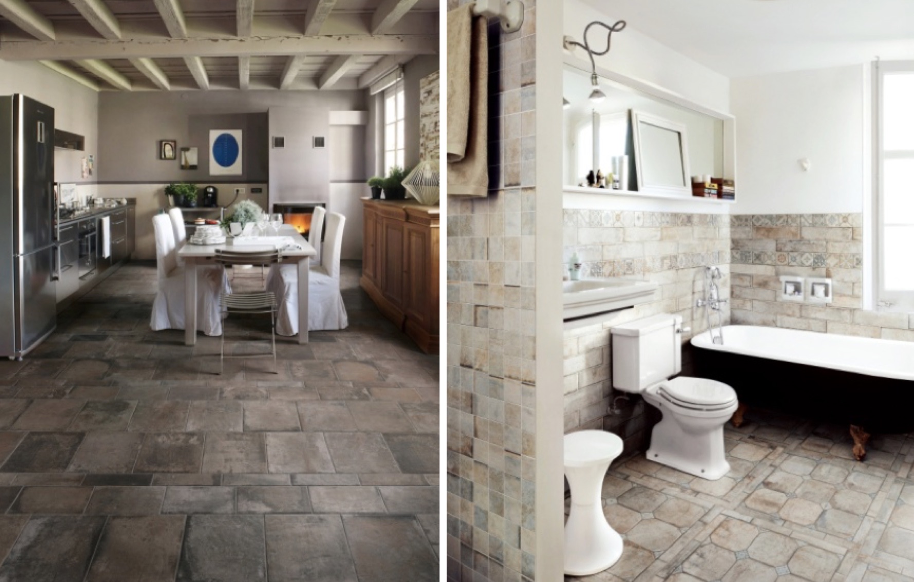 DantoTile(東京都中央区)はこのほど、シャビーなテイストの屋内用壁床タイルシリーズ「テレヌオヴェ」を発売した。