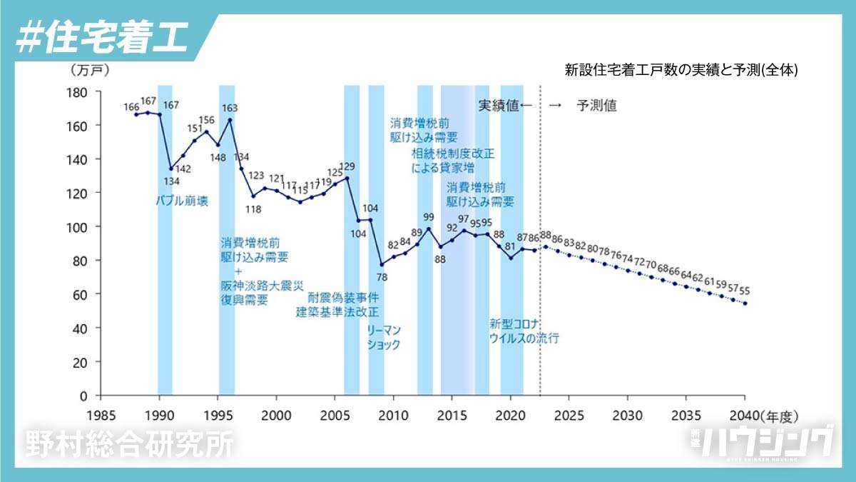 同予測では、将来予定されている消費税増税の影響(増税前の駆け込み需要、および、反動減)は加味していない。また、景気動向などに伴って、着工などが前倒しされたり、先送りされたりすることにより、実際の着工戸数やリフォーム市場規模は変動する可能性があるものとしている。