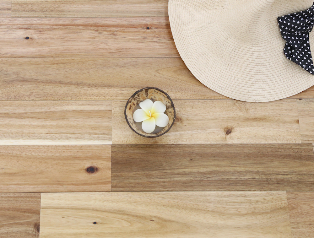 樹種はアカシア、アジアンオーク、アジアンバーチの3種類で、ラフな表情が特徴。無塗装のため、好みの塗装をほどこすことによりオリジナリティのある床を演出できる。塗装にも対応可能。 1820x90x15。節・エンドマッチ加工あり。10枚入り。