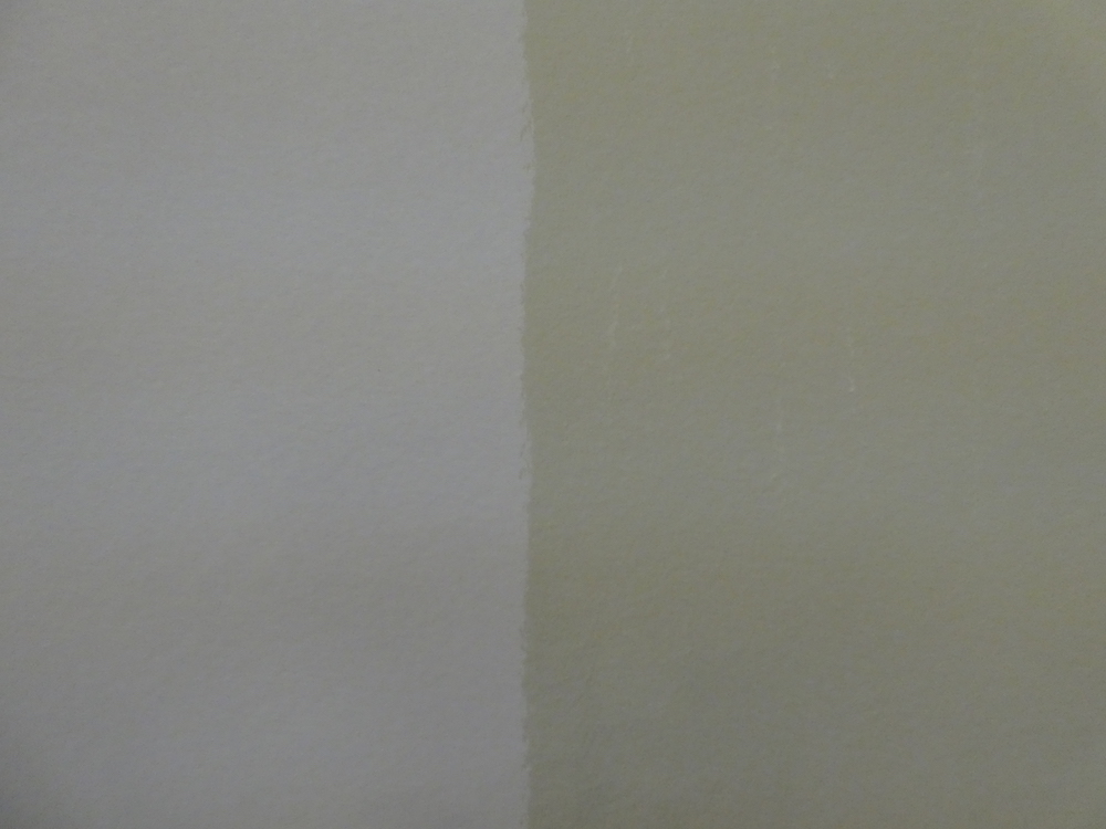 「パールグレー」(左側の色)の上に「クレイ」(右側の色)を塗り重ねたところ。