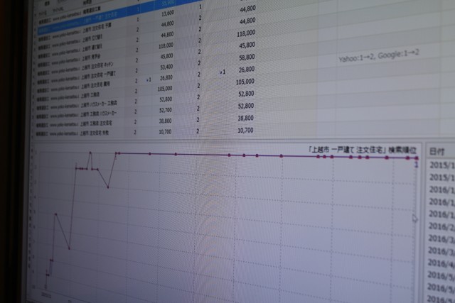 それまで同社は、例えば完成見学会の申し込みはチラシからがすべてでした。その状況が、しっかりと対策を施した結果、「○○市 注文住宅」「○○市 建て替え」といったキーワードのほか、「○○市 ハウスメーカー」といった周辺の主要なワードでも、現在検索されると1、2番を争うところまで向上しました。その結果WEBからの申し込み比率が3割になった。