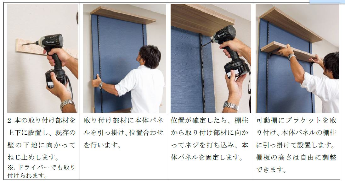 大和ハウスグループのデザインアーク(大阪府大阪市)は9月28日、賃貸住宅などに後付けできる省施工タイプの壁面収納「Accessory Wall(アクセサリーウォール)」を発売する。 壁面を利用して最大約1m2の収納スペースを確保できるもの。面材には壁紙と調和するホワイト色の合板、クロス張り仕様を用意した。 施工は4工程のみ、1人で設置できる。1161x880mm。