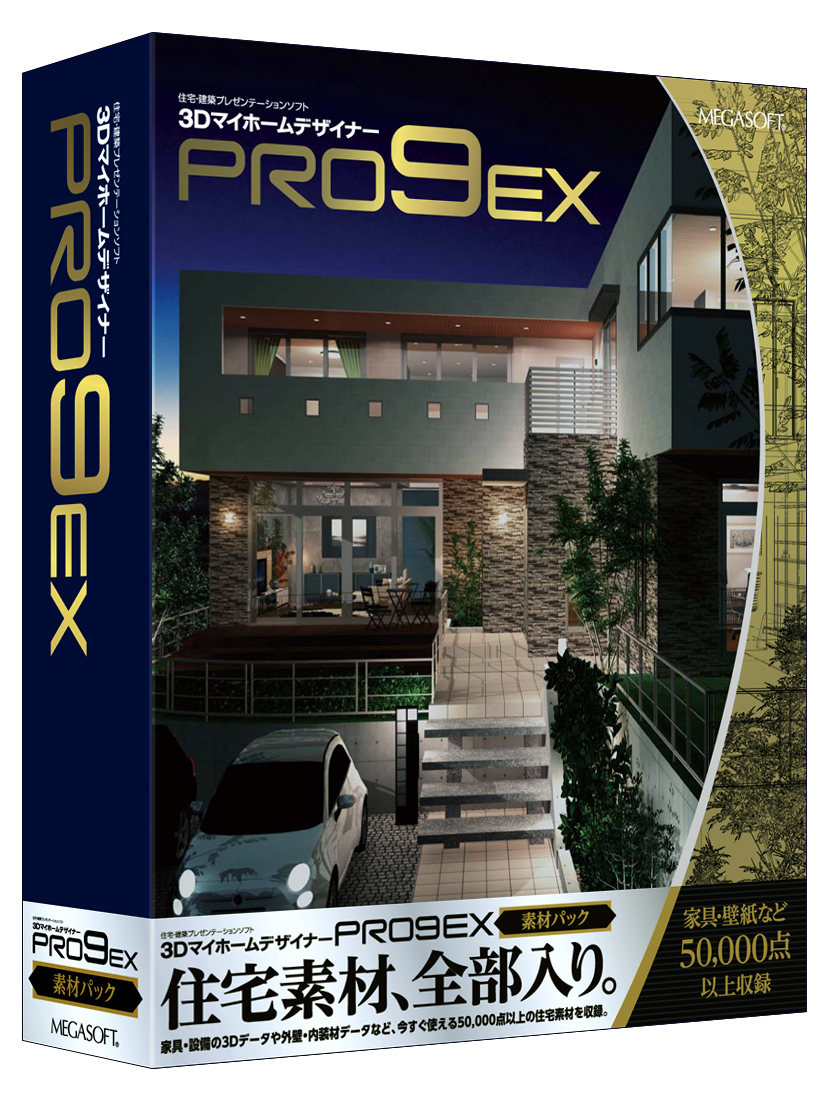 メガソフト(大阪府大阪市)は10月21日、住宅素材を約5万点収録した3D住宅プレゼンソフト「3DマイホームデザイナーPRO9 EX素材パック」を発売する。
