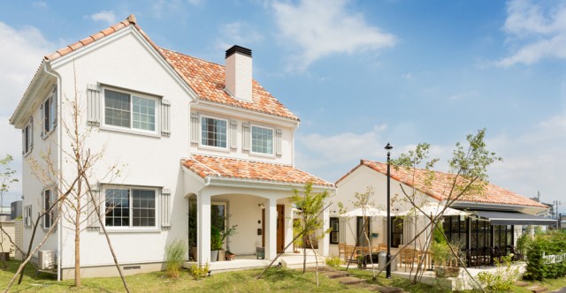 「ハウジングカフェ」は、同社の家の魅力を詰め込んだカフェ「花水木カフェ」と、モデルハウス、ゲストハウスを同じ敷地に併設した新たなビジネスモデル。家づくりを考えていない一般の人を含む多くの人に、カフェを通じて同社を知ってもらい、モデルハウスでイメージを膨らませ、住み心地の最終確認をしたい人には寝室・トイレ・バスルーム・キッチンを完備したゲストハウスで体験宿泊の機会を提供する。