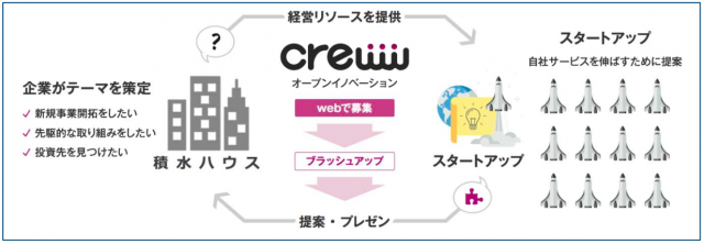 同プログラムは「暮らしが変われば世界が変わる。あなたのアイデアで暮らしを豊かに。」をテーマに、積水ハウスグループがこれまで培った経営リソースと、スタートアップ企業の事業を掛け合わせて事業を創りだし、革新的な価値を市場に創り出すことを目的としたもの。Crewwが同プログラムの枠組みを提供し、スタートアップ企業の選定からマッチング、新規事業創出までの過程を積水ハウスと共同で行う。
