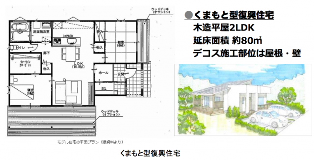 同社は熊本木造応急仮設住宅(190棟563戸)において、壁・屋根の施工を担当している。