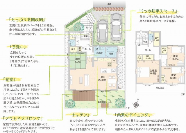 今回販売するモデルでは、日常的に「ソト」を楽しむため、アウトドアダイニングやアウトドアリビングの活用を提案。また、アウトドア用品の手入れや収納がスムーズにできるよう、間取りや動線も配慮されている。都心への通勤圏内でありながら、豊かな自然にかこまれた立地で、遊び場の少なくなった子どもたちが安全に楽しめる住まいとなっている。
