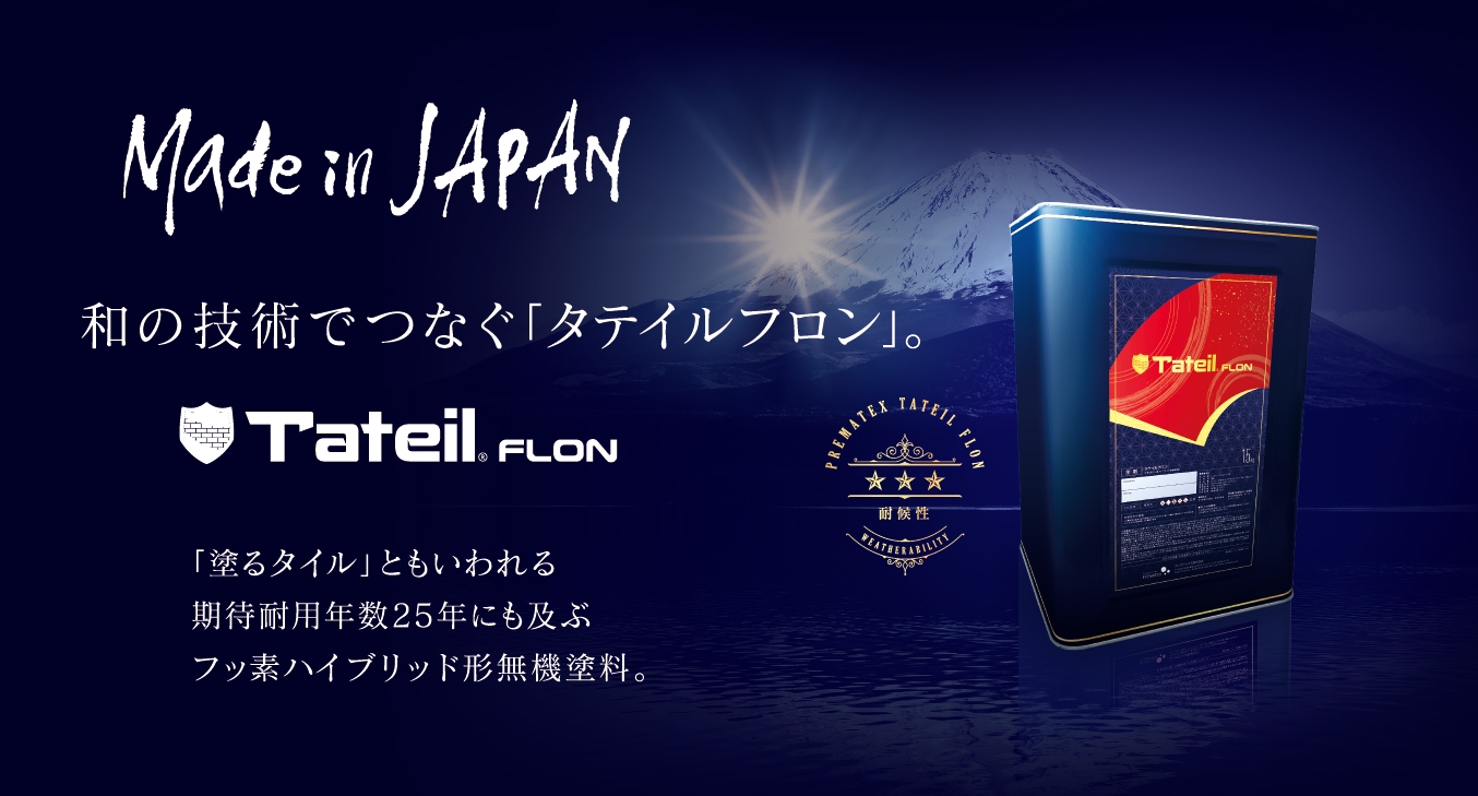 あわせて、ハイドロクリーニング機能をもち、チリやホコリを寄せつけにくいフッ素ハイブリッド形の無機塗料「タテイルフロン」も発売する。