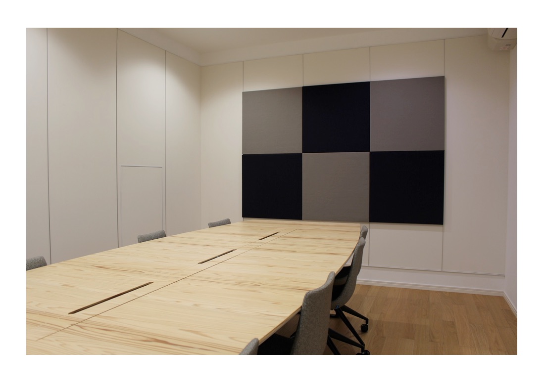もう一方の「マグネットパネル」は、裏面がマグネットになっているため、スチール製パーティションに手軽に取り付けられるもの。人の声の音域から高音域まで約80%吸音する。