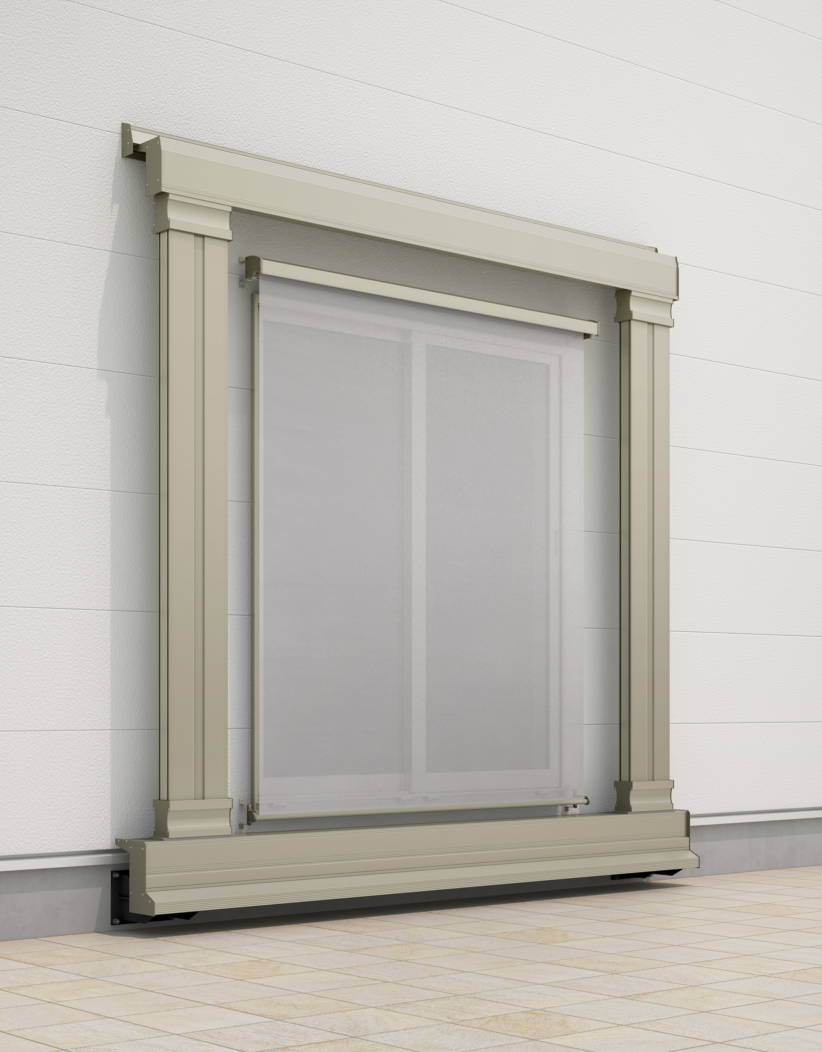 従来は基礎部分にコンクリートを打設する必要があったがこれを省略し、アルミ下枠をスチール金物で固定する乾式工法を採用。「アルミ四方枠耐震フレーム」で窓を囲んで耐震性を高める。コンクリ工事を不要にし、オールアルミ素材のフレームを採用したのは業界初という(特許申請中)。