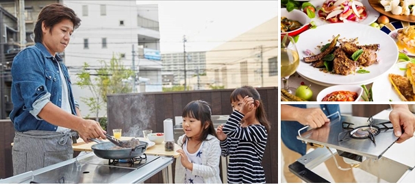 同社は、近年の成年男性の料理人口増加と、料理や食に対する関心の高さに対応し、空間が広く煙やにおいが気にならない屋上を「アウトドアキッチン」として活用することを提案。「食を介した交流の場」となるよう、屋外用の調理器具とアイランドキッチンにもなるダイニングテーブル、米澤文雄シェフ監修のアウトドアキッチンオリジナルレシピ集などをパッケージ化した。