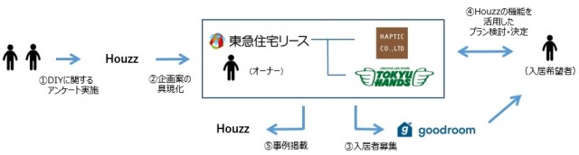 4社は、東急住宅リースが管理する一部の賃貸住宅の2部屋において実施したアンケート結果を、「T×HAPTIC with HANDS(DIYモデル)」に反映し、2017年3月の入居に対応できるよう取り組む。