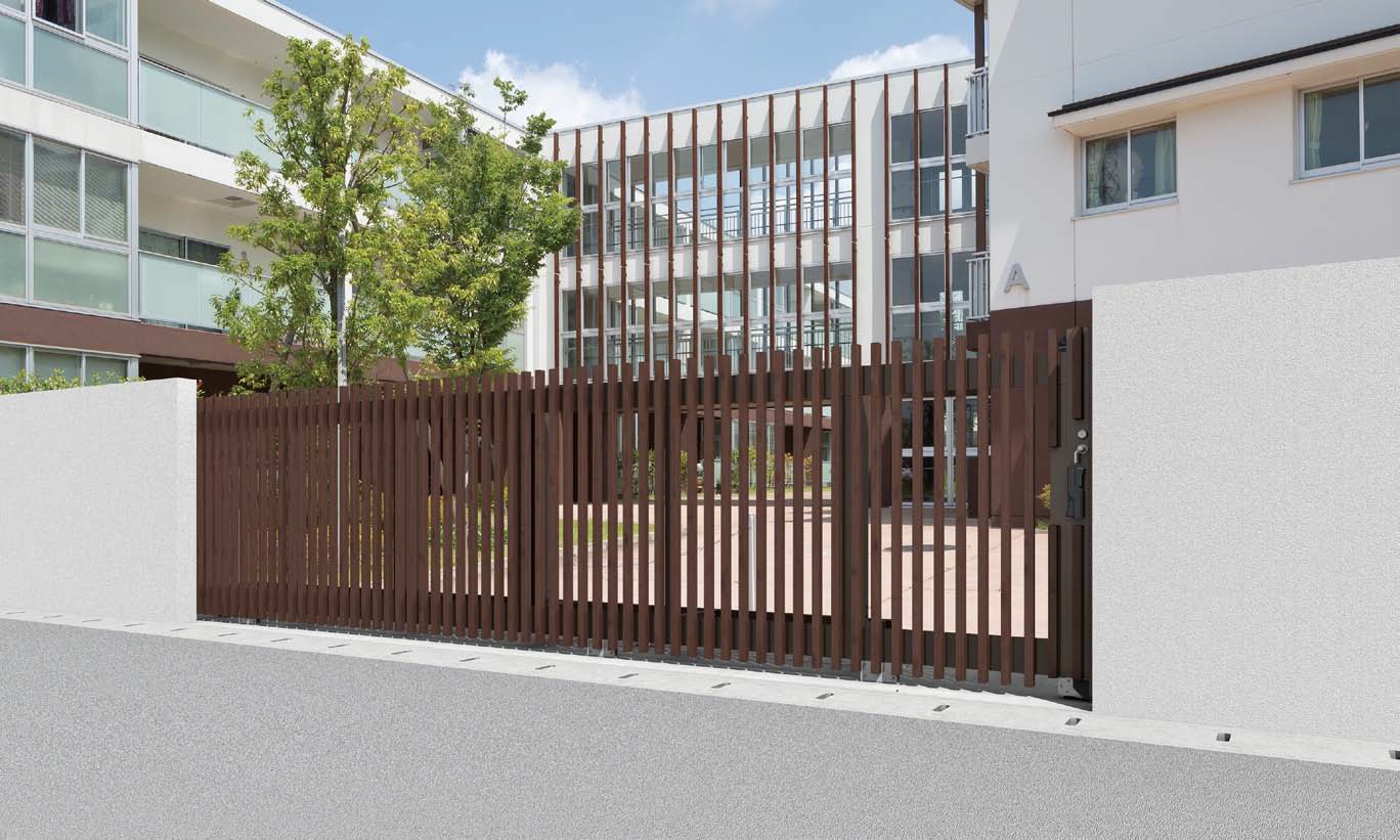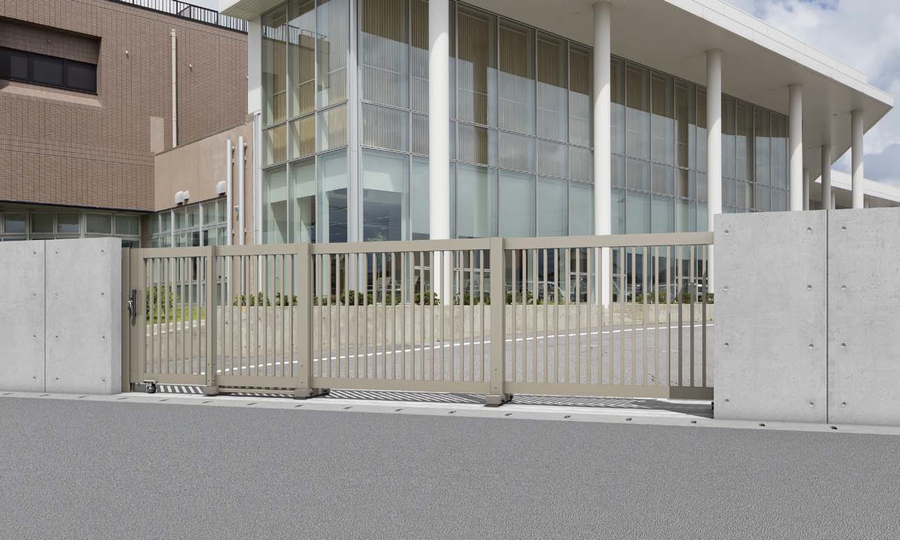 三協立山(富山県高岡市)三協アルミ社は、操作性・施工性・強度・防犯性を向上した公共施設向けの大型引戸門扉「ライディートN」「グラフェードN」を発売した。