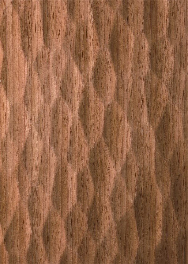 基材に不燃性の火山性ガラス質複層板を、表面に天然木の突き板を採用してプレス成型。立体的な意匠を付加することで、従来のフラットな化粧板にはなかった質感が得られる。 不燃素材のため、商業施設やホテル等の内壁・天井にも使用可能。リノベにも。 4デザイン各4色。2420x910x5.7mm。材料設計価格1万9460円/m2。