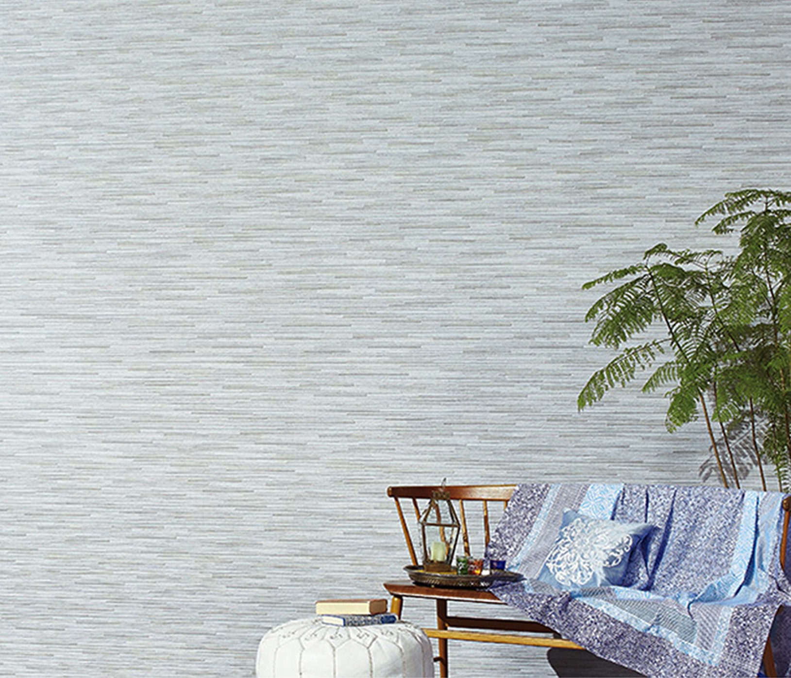 もう1つの「ルシェロ」は、定番のくしびき柄にランダムな太さのリブや半楕円のアクセントをつけた個性的な新柄。単色ビーズ塗装品2色、単色マット塗装品4色をラインアップする。3438円/m2〜。