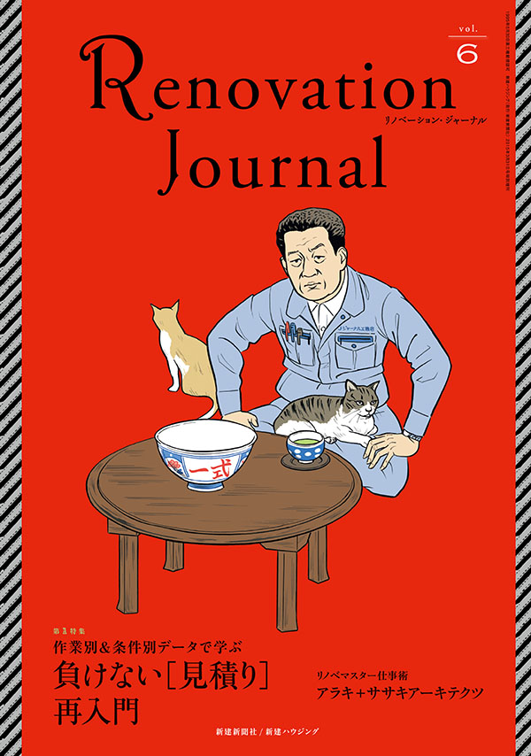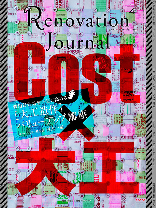 リノベーションの次のメガトレンドは何か?特集1は業界のストックビジネスシフトと国のバックアップで注目は高まっている「断熱改修」について。実践が進んでいないという現状を踏まえた内容になっている。特集2は、これまでメディアで触れられることのなかった地味な裏方的作業とそのカイゼン方法をビジュアルに解説する。